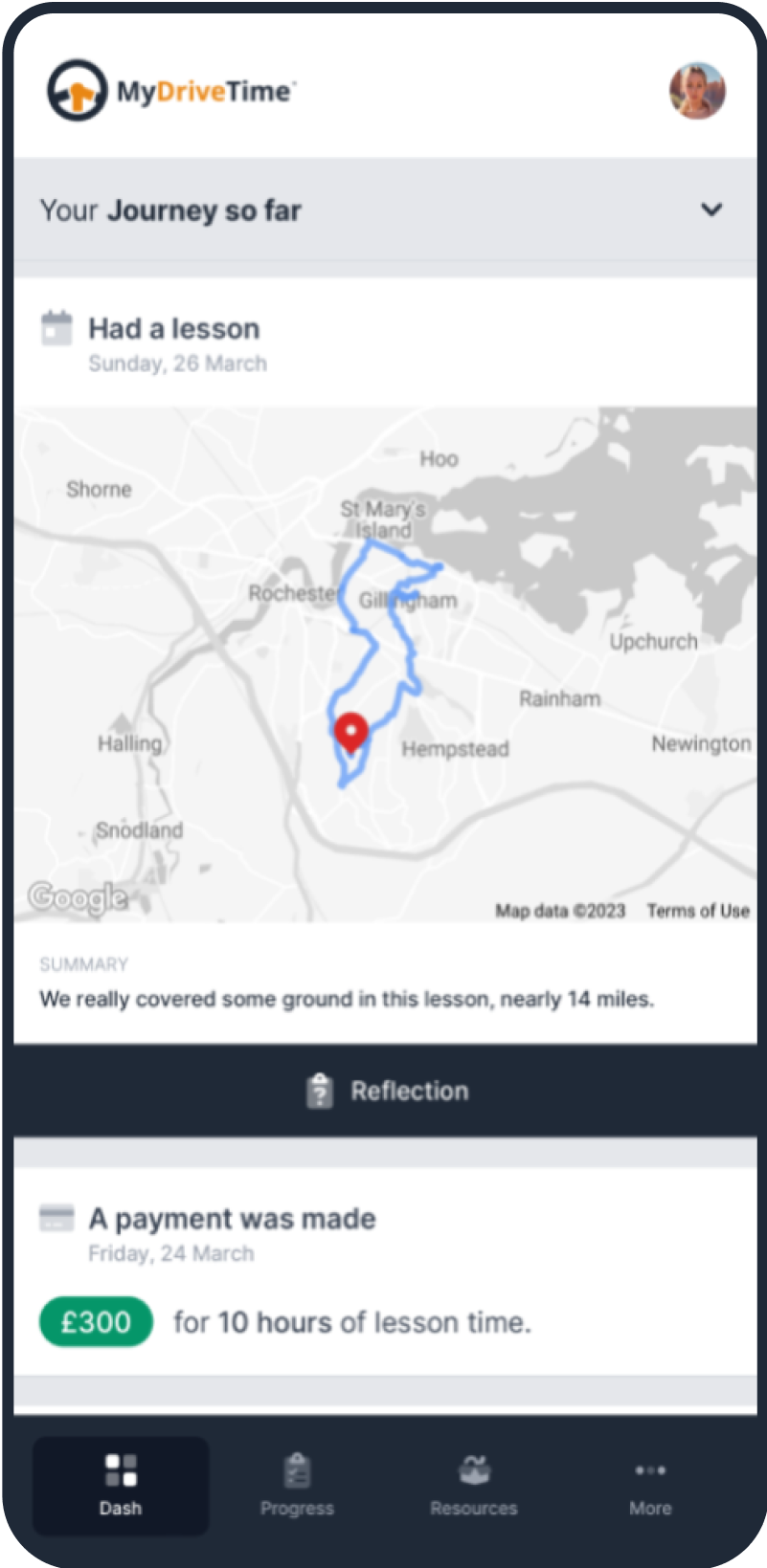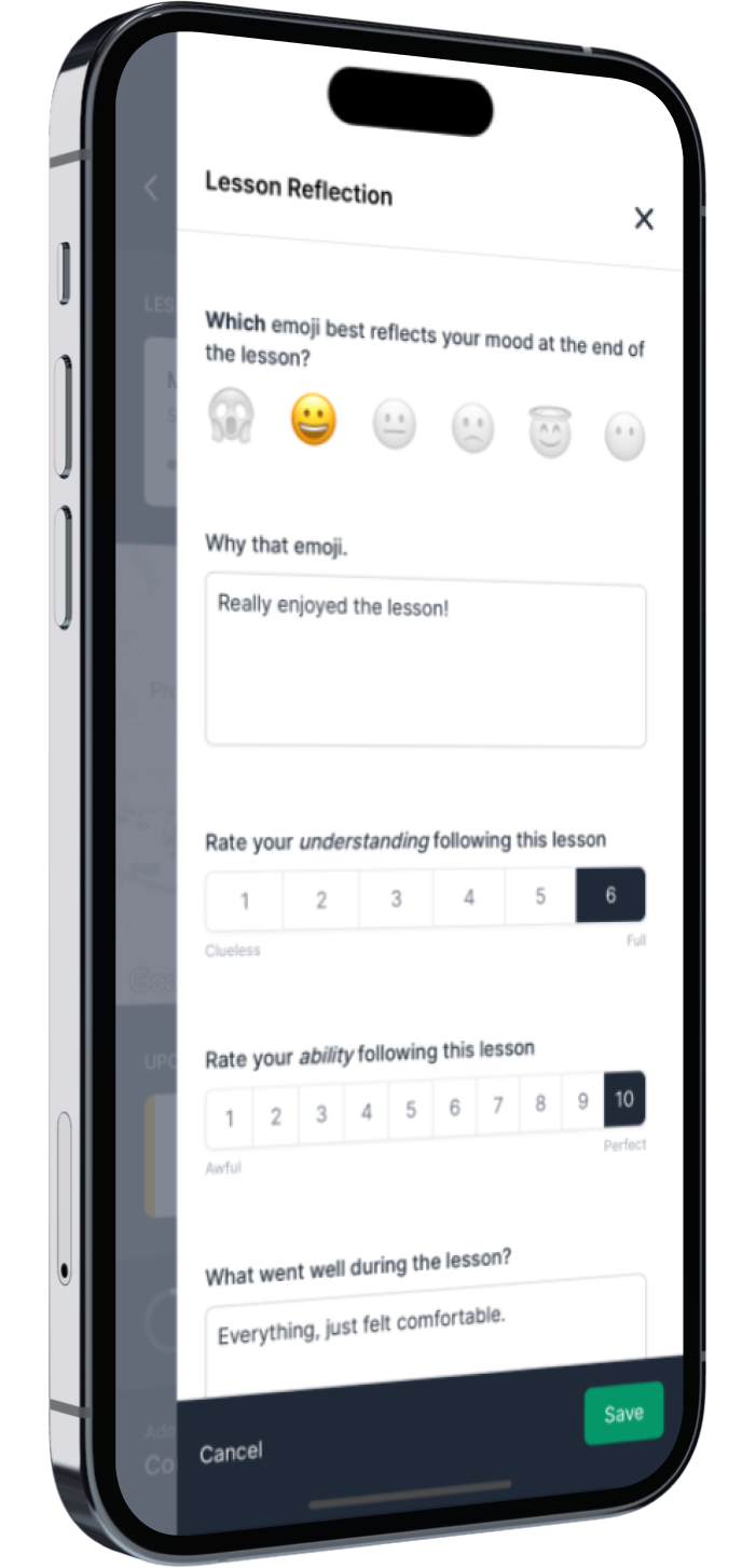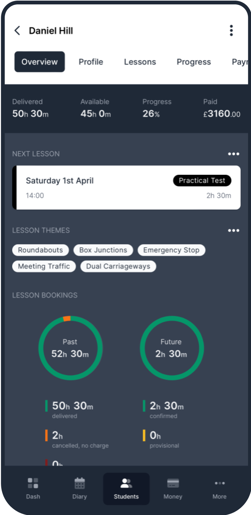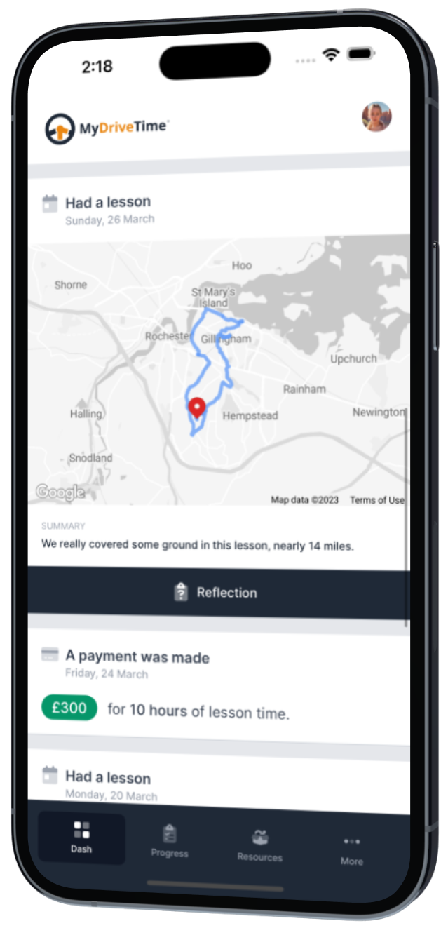 The fact that everything is contained inside MyDriveTime such as finances, student development, diary and profiles is fantastic. MyDriveTime puts ME in the driving seat! I love it!