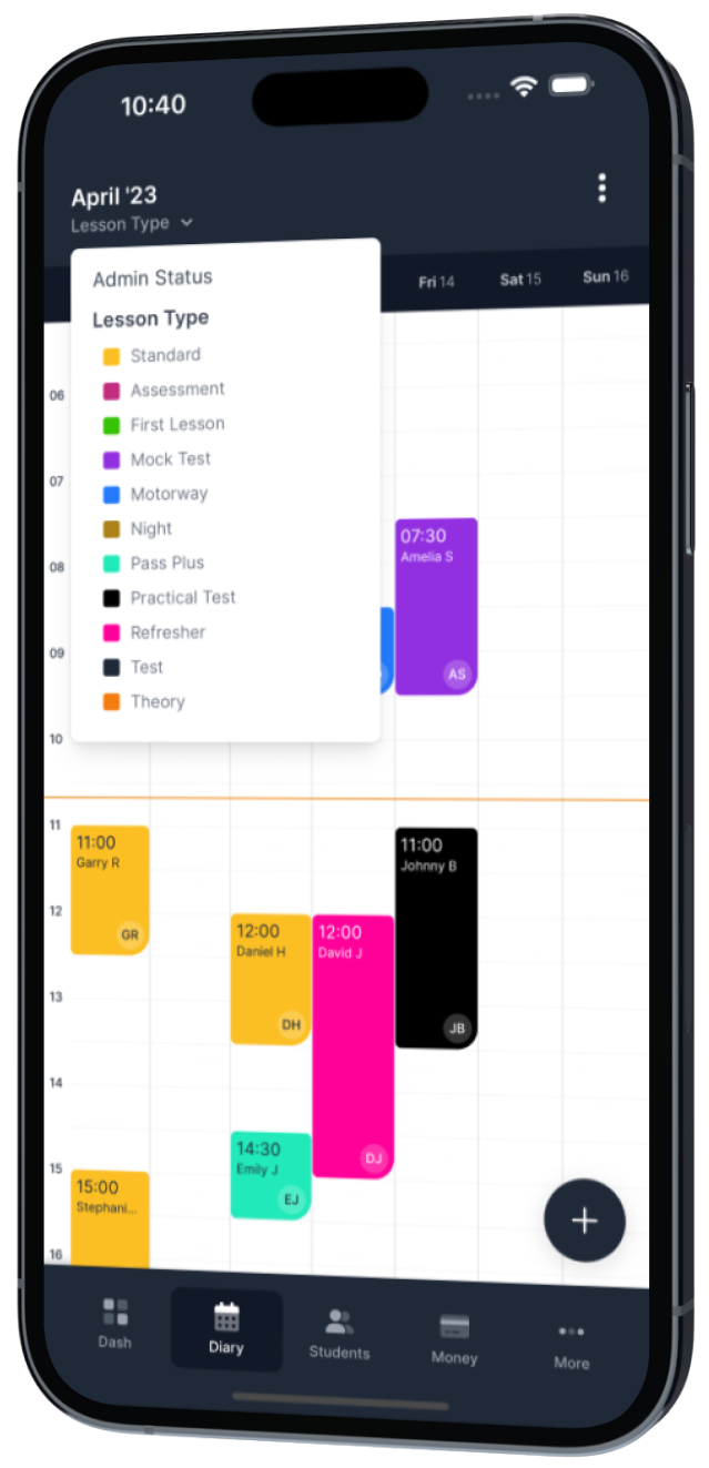 Manage your students, diary, lessons, progress and payments in our new and improved platform — with or without an internet connection.